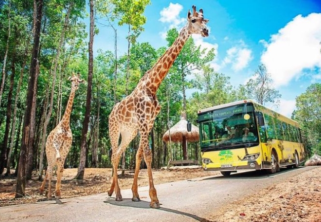 Buổi sáng ngày thứ hai trong tour 3 ngày 2 đêm: Khám phá trọn vẹn Bắc đảo tinh hoa Phú Quốc bắt đầu từ 9h00 tại Vinpearl Safari. Đây là công viên chăm sóc và bảo tồn động vật bán hoang dã lớn nhất Việt Nam, nơi bạn có thể chạm gần hơn vào đời sống tự nhiên của muôn loài. Trải nghiệm “nhốt người thả thú” trên những chiếc xe bus chuyên dụng tại Khu bán hoang dã chắc chắn sẽ là kỷ niệm khó quên cho mọi lứa tuổi.