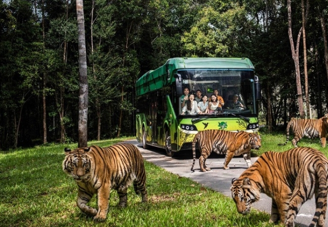 Vinpearl Safari vườn thú bán hoang dã lớn nhất Việt Nam với hơn 150 loài động vật quý hiếm. Ngắm sư tử, hổ, voi, hươu cao cổ sinh sống tự nhiên trong môi trường rộng rãi thoải mái an toàn. Xem biểu diễn vũ điệu thổ dân châu Phi độc đáo và cho động vật ăn trực tiếp thú vị đáng nhớ.