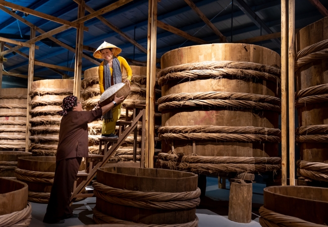 Cơ sở nước mắm Phú Quốc để hiểu cách ủ mắm truyền thống hơn 100 năm tuổi nổi tiếng khắp nơi. Hàng nghìn thùng gỗ chứa nước mắm xếp thành hàng dài tạo khung cảnh ấn tượng độc đáo chụp ảnh đẹp. Mua nước mắm ngon về làm quà với giá từ 80.000-200.000 đồng mỗi chai tùy loại chọn lựa kỹ càng.