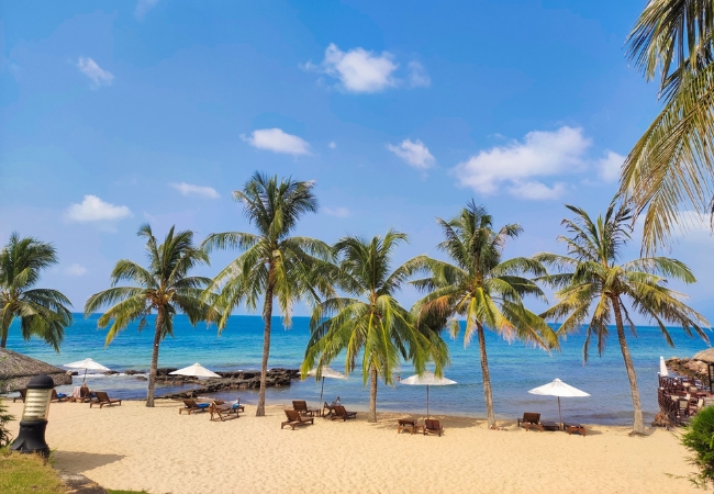 Một trong những khu nghỉ nổi bật là Chen Sea Resort & Spa Phú Quốc, nằm ngay bên bờ biển, được thiết kế theo phong cách hòa mình vào thiên nhiên. Các bungalow hướng biển mang đến cảm giác riêng tư, yên tĩnh và sang trọng. Ngoài ra, Camia Resort & Spa cũng là lựa chọn lý tưởng với hồ bơi vô cực nhìn ra biển, nhà hàng phục vụ hải sản tươi sống và vị trí thuận tiện chỉ vài bước là ra tới bãi cát.