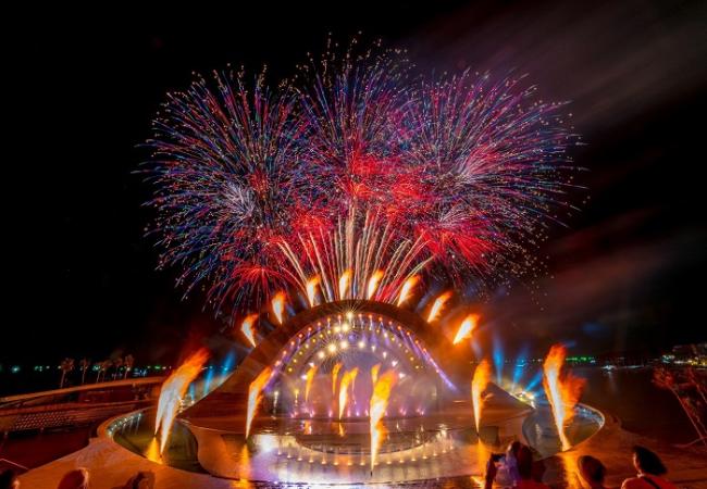 Khi màn đêm buông xuống, Sunset Town lại bừng sáng với show diễn đa phương tiện Kiss of the Sea. Đây là sự kết hợp đỉnh cao giữa nhạc nước, ánh sáng laser, lửa và các màn trình diễn vũ đạo điêu luyện của các vũ công quốc tế. Câu chuyện tình yêu lãng mạn được kể giữa không gian biển trời huyền ảo sẽ khiến bạn phải choáng ngợp bởi quy mô và công nghệ sản xuất tầm cỡ thế giới.