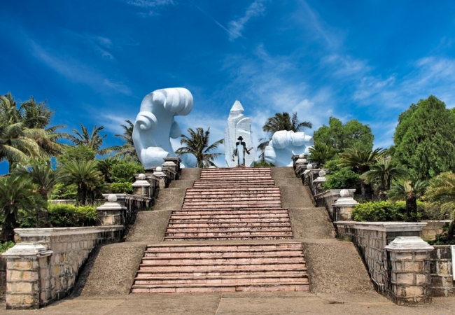 Sau khi tham quan các khu giam, du khách nên ghé đài tưởng niệm. Đây là nơi thắp hương tưởng nhớ hơn 500 chiến sĩ hy sinh. Đài được xây dựng năm 2013 với kiến trúc đặc biệt. Hai bên là hình sóng cao hơn 5m tượng trưng cho biển cả. Ở giữa là hình khối nhọn với hình người được khoét rỗng. Ý nghĩa là “những con người ra đi từ nơi ấy”. Không khí trang nghiêm, tĩnh lặng bao trùm khu vực. Du khách nên giữ thái độ tôn trọng, nghiêm túc.
