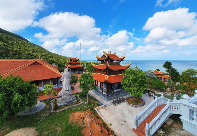 Chùa Quốc Hộ là điểm đến tâm linh quan trọng, thu hút đông đảo khách hành hương mỗi khi ghé Phú Quốc. Từ khu di tích di chuyển đến chùa chỉ khoảng 10 km, thời gian đi xe tầm 20 phút. Không gian chùa yên bình, thoáng đãng, kiến trúc mang vẻ trang nghiêm giúp du khách dễ dàng tìm được sự thanh tịnh sau hành trình tham quan.