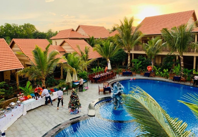- Camia Resort & Spa tại tổ 3 ấp Ông Lang với giá từ 1.600.000 đồng mỗi phòng. Resort nổi bật với không gian xanh mát mẻ trong lành.