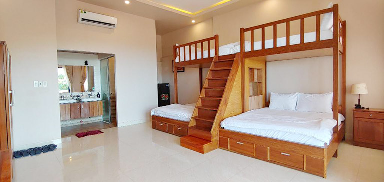 - Giường: 1 giường siêu lớn hoặc 1 giường sofa hoặc 2 giường đơn