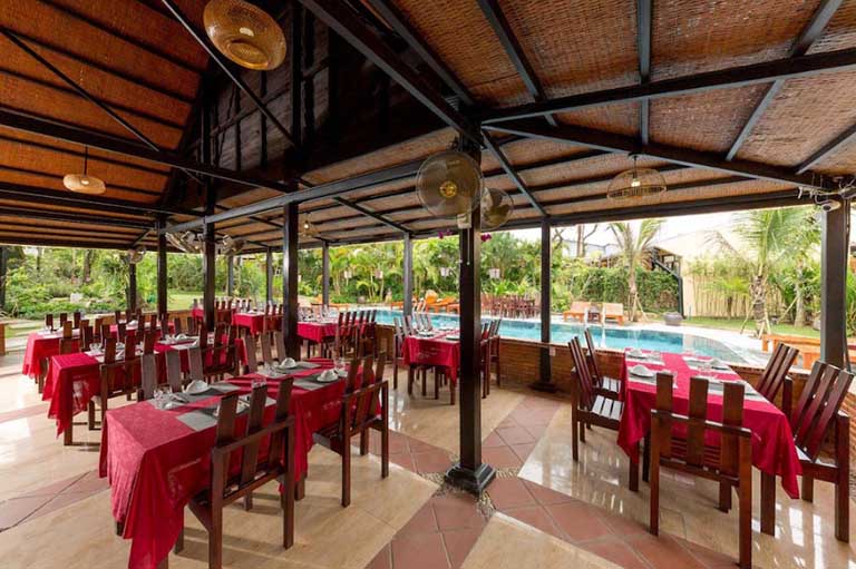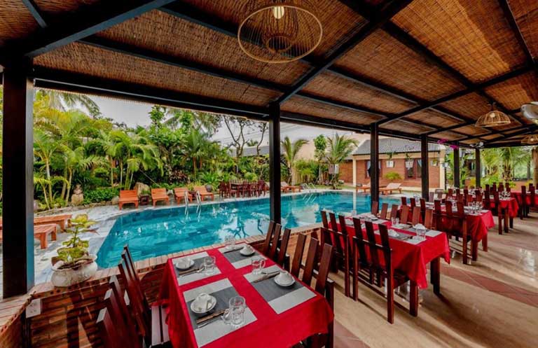 Trái tim của trải nghiệm ẩm thực chính là Nhà hàng sang trọng của resort. Với không gian được thiết kế tinh tế và phong cách phục vụ chuyên nghiệp, nhà hàng hứa hẹn mang đến những bữa ăn tuyệt vời, từ các món đặc sản địa phương tươi ngon đến ẩm thực quốc tế phong phú. Đây là nơi hoàn hảo để bạn thưởng thức bữa tối lãng mạn hoặc bữa trưa ấm cúng.