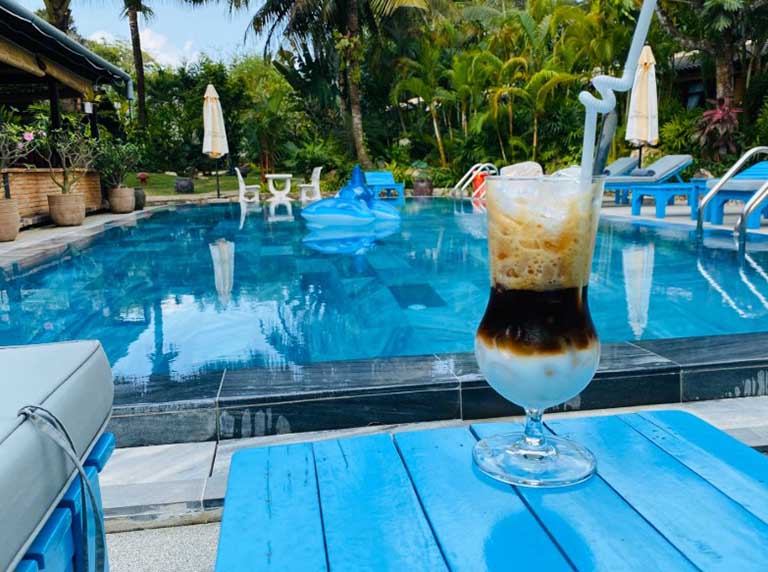 Để trải nghiệm thư giãn thêm phần trọn vẹn, ngay bên cạnh hồ bơi là quầy bar hồ bơi (Poolside Bar). Tại đây, bạn có thể dễ dàng gọi cho mình những ly đồ uống mát lạnh và các món ăn nhẹ hấp dẫn. Việc nhâm nhi cocktail, nước ép tươi trong khi ngâm mình dưới ánh nắng vàng và lắng nghe tiếng gió biển rì rào chắc chắn sẽ là một trải nghiệm thư giãn khó quên tại La Paloma Resort.
