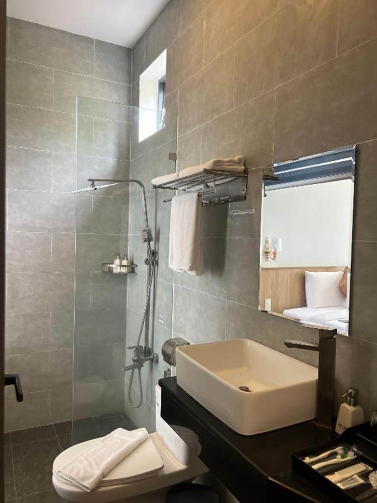 - Phòng tắm riêng tiện nghi: Tất cả các căn đều có phòng tắm riêng với vòi sen, cùng với máy sấy tóc và dép đi trong phòng, đảm bảo sự riêng tư và thuận tiện cho bạn.
